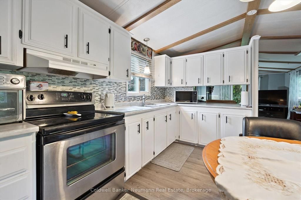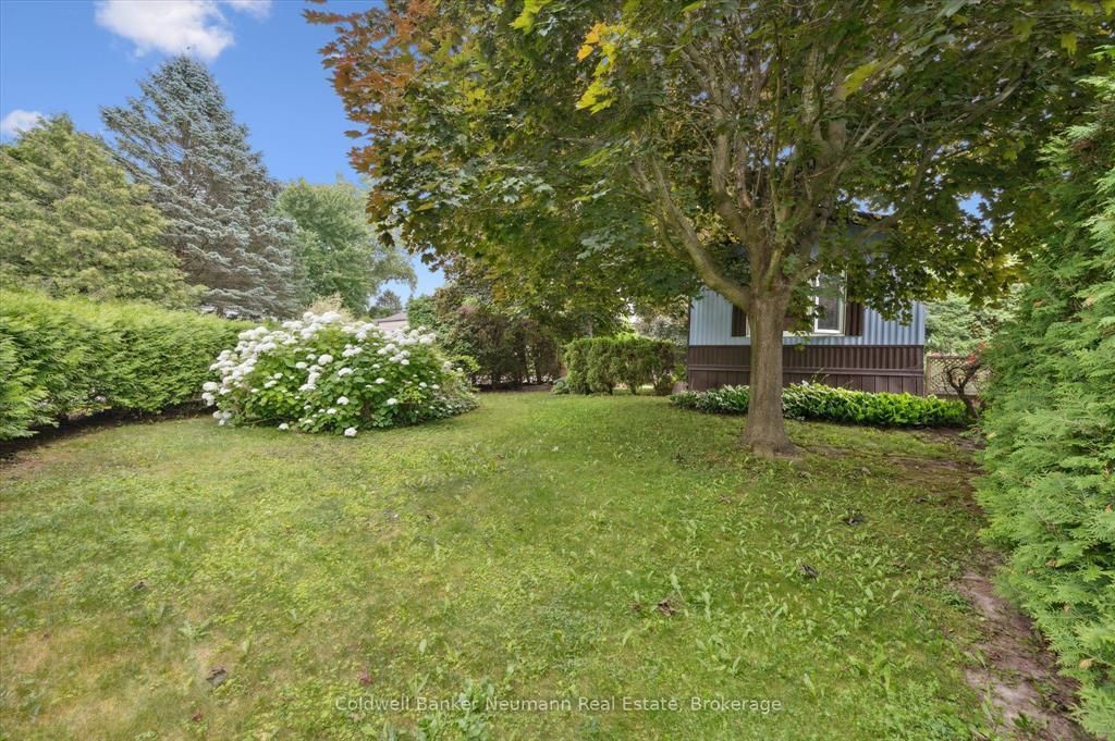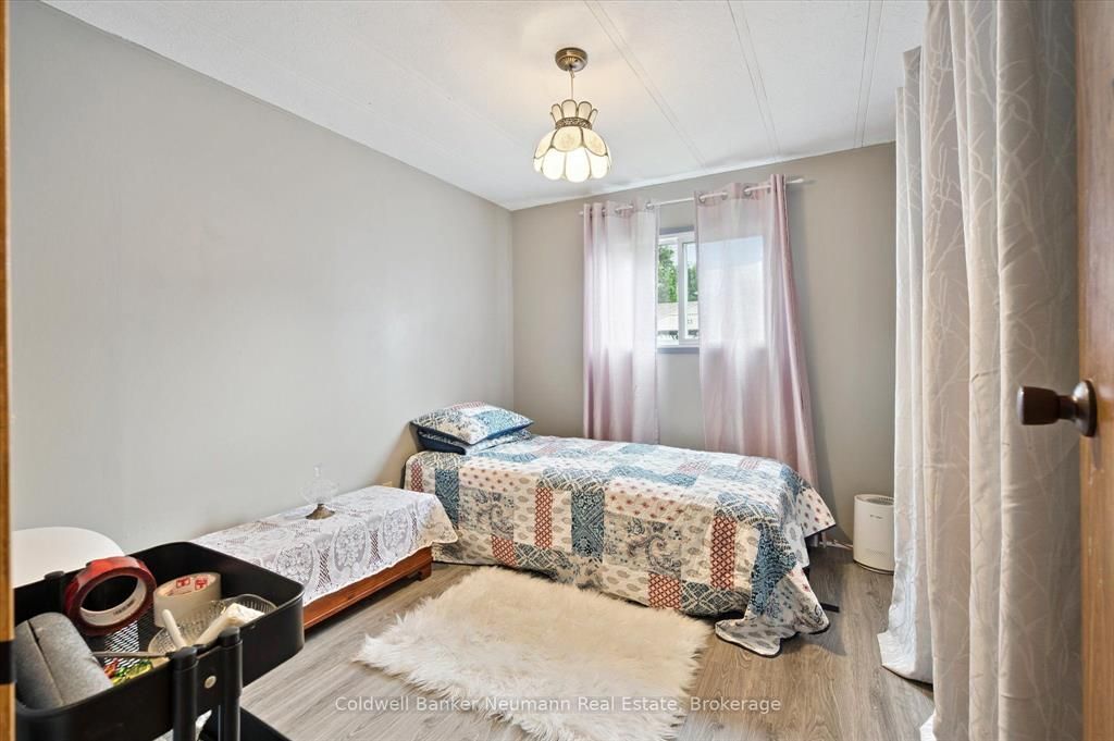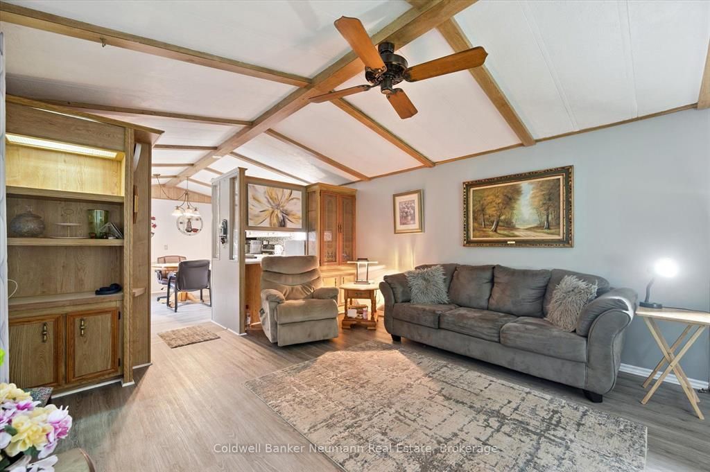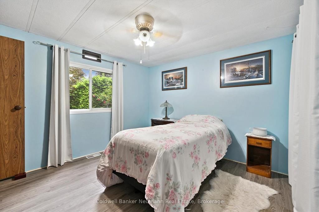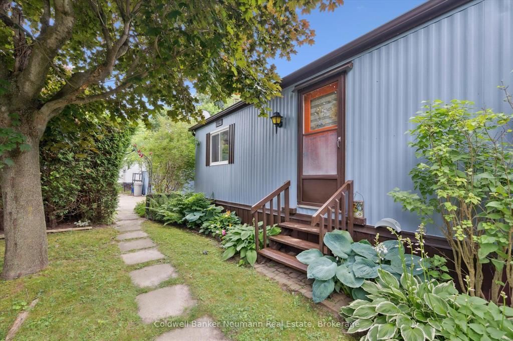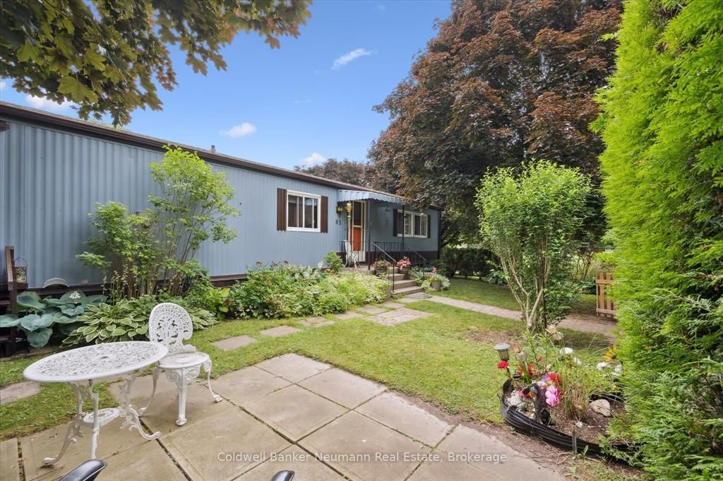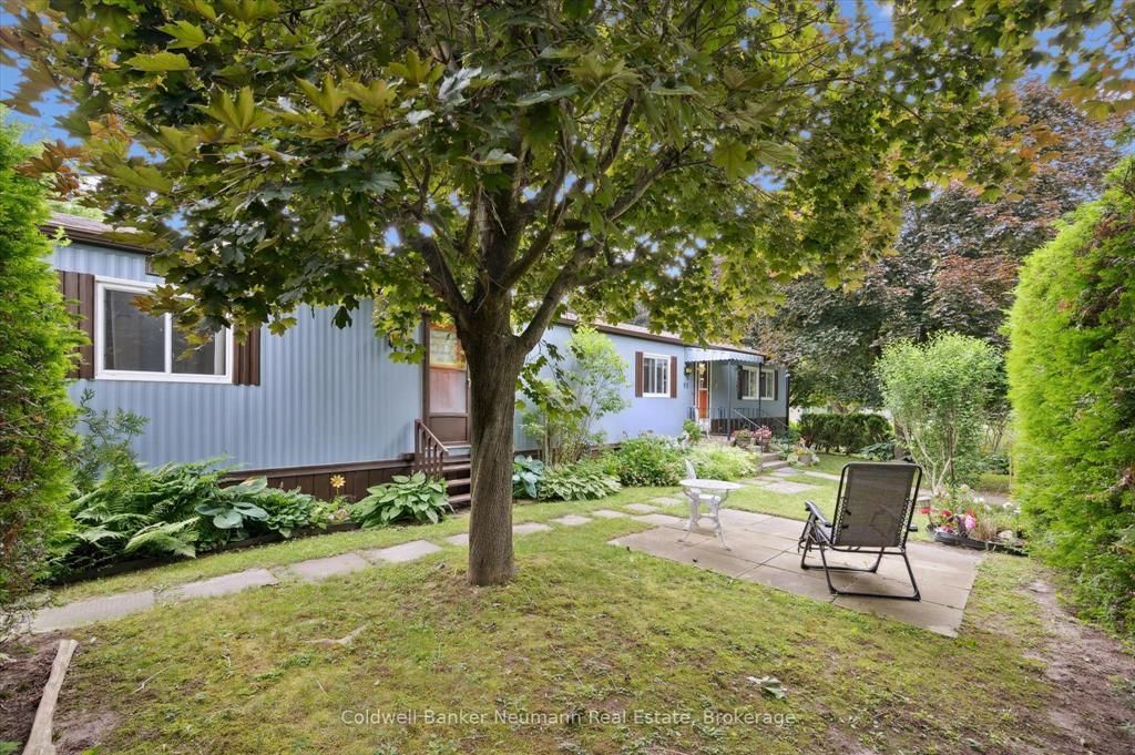 This well maintained 2 bedroom bungalow is surrounded by an 8 foot hedge, which allows ultimate privacy from others! The only thing to be seen from the road is the double paved driveway and shed. Inside you will find a generous size eat-in kitchen, living room with propane stove, updated 3 piece bathroom combined with laundry and a primary bedroom with wall to wall closet. The exterior vinyl siding was painted about 2 years ago, furnace and central air is about 7 years old, the windows and roof about 10 years ago. Located on a street with great neighbours! This modular home is located within Beverly Hills Estates, a residential modular home park, with a community centre and scheduled events for residents to join (or not!) All homes are owner occupied-no rentals! Come out and see this wonderful affordable home in a great community!