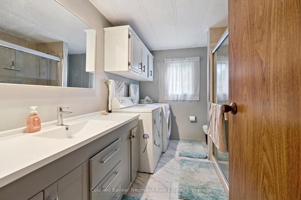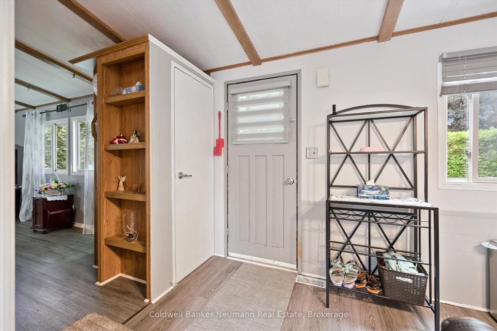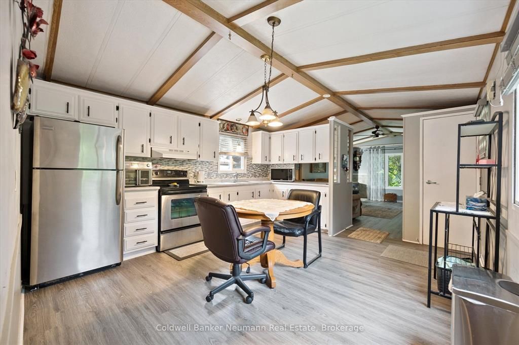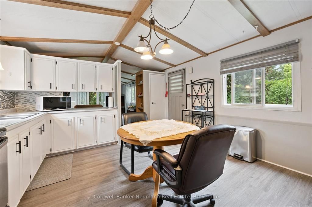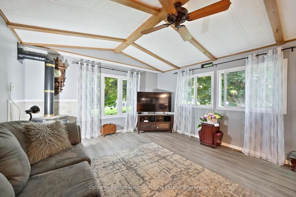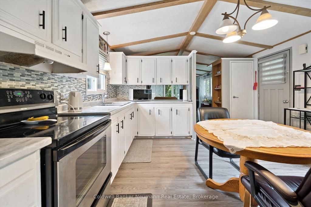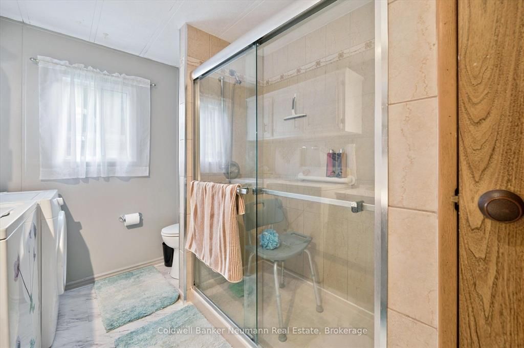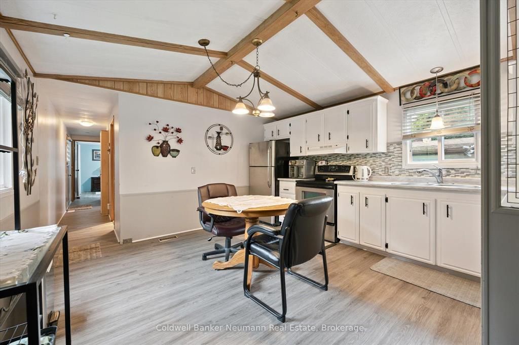 This well maintained 2 bedroom bungalow is surrounded by an 8 foot hedge, which allows ultimate privacy from others! The only thing to be seen from the road is the double paved driveway and shed. Inside you will find a generous size eat-in kitchen, living room with propane stove, updated 3 piece bathroom combined with laundry and a primary bedroom with wall to wall closet. The exterior vinyl siding was painted about 2 years ago, furnace and central air is about 7 years old, the windows and roof about 10 years ago. Located on a street with great neighbours! This modular home is located within Beverly Hills Estates, a residential modular home park, with a community centre and scheduled events for residents to join (or not!) All homes are owner occupied-no rentals! Come out and see this wonderful affordable home in a great community!
